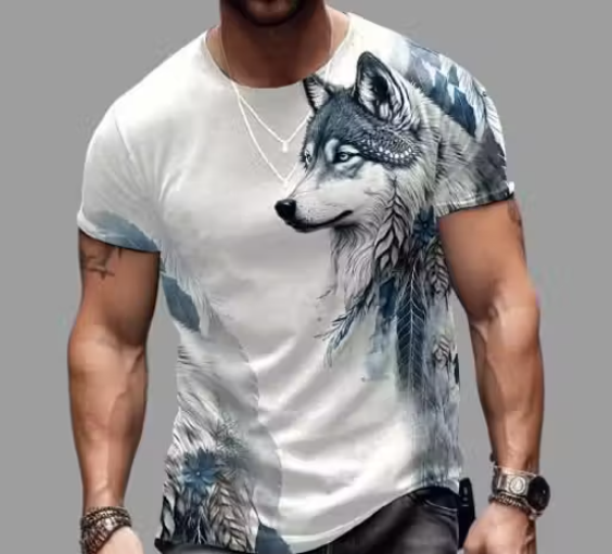 Wolf printing white half sleeves men t shirt