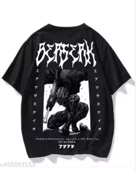 Loviya Anime Printed oversize drop shoulder round neck pure cotton Black t shirt for men