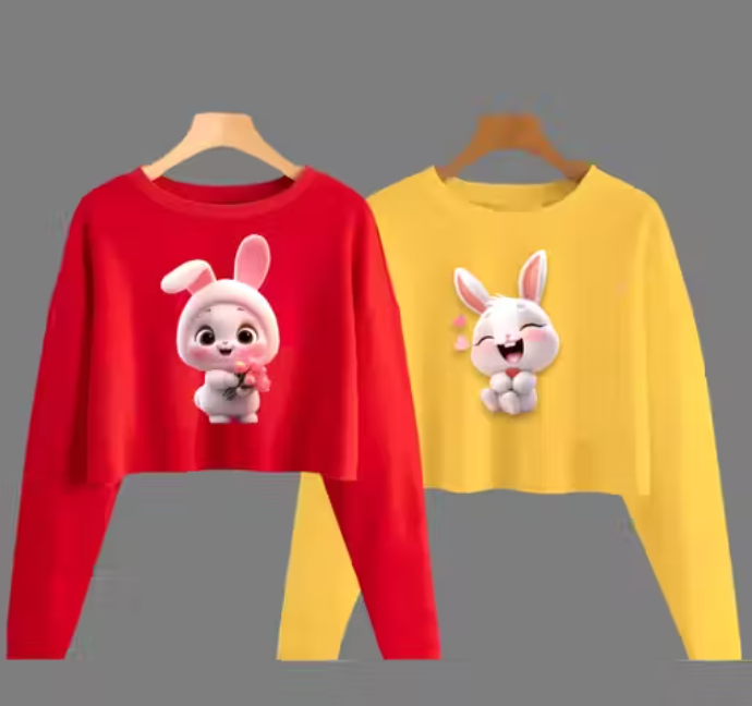 Anraha Fashions Pretty Graceful Girls Crop Top Round Neck Full-Sleeves T-Shirt For Girls. (Pack Of 2).